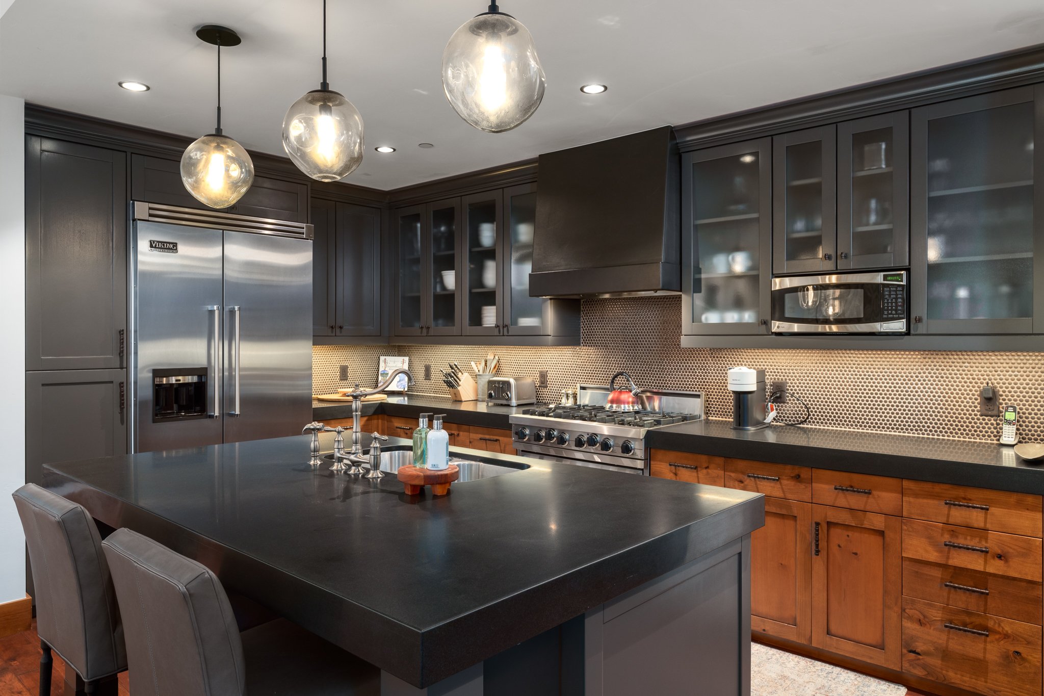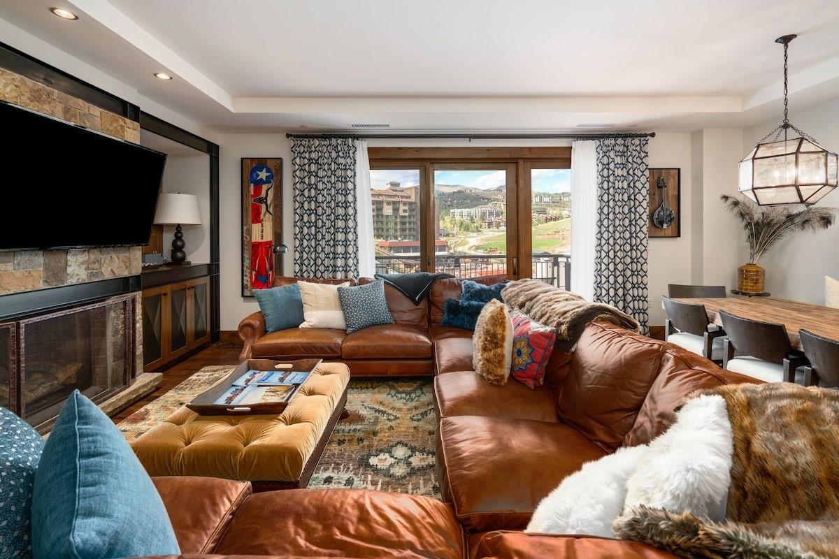 Residence 609 boasts breathtaking views of the ski slopes, elegant furnishings and décor throughout, with a master bedroom featuring a cozy gas fireplace and an en-suite bath with a relaxing steam shower. The recently updated kitchen features sleek new appliances including a Sub-Zero refrigerator, Wolf Range, & Cove Dishwasher and a built-in Viking grill on the private deck, perfect for preparing family dinners.